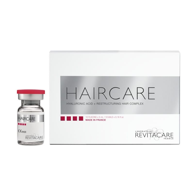 HAIRCARE REVITACARE è un impianto riassorbibile composto da acido ialuronico 2 mg + complesso ristrutturante per capelli q.b. a 5 mL, iniettabile mediante micro-iniezioni nel derma del cuoio capelluto, vicino alle radici dei capelli.