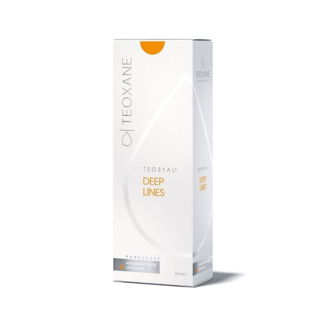 TEOSYAL DEEP LINES è un filler dermico studiato per la correzione delle rughe profonde e delle linee d’espressione più marcate. Contiene 25 mg/ml di acido ialuronico, una concentrazione elevata che consente di restituire volume e sostegno alle zone del viso maggiormente colpite dai segni dell’invecchiamento. La formulazione con lidocaina contribuisce a rendere il trattamento più confortevole, riducendo la sensazione di fastidio durante l’iniezione.